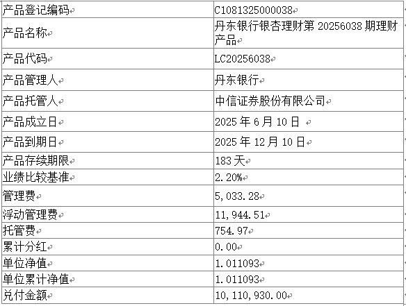 我行下列理财产品已于2025年12月10日进行到期清算兑付,根据与投资者的约定,现将到期情况进行公告,具体披露信息如下。