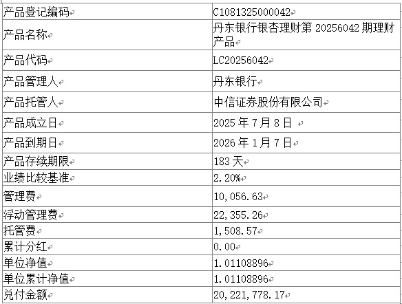 丹东银行银杏理财第20256042期理财产品到期公告