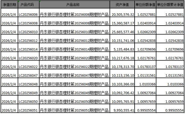 注:以上净值仅供参考,不作为产品到期兑付金额计算依据,投资者获得的最终收益以我行实际支付为准。